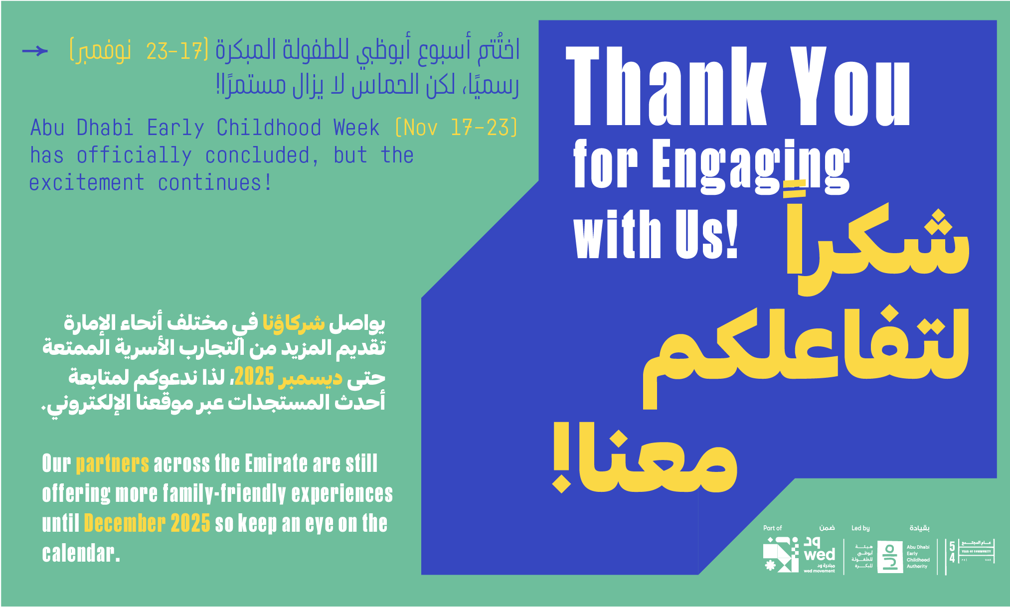 Abu Dhabi Early Childhood Week 2025 invites the whole COMMUNITY to come together and embrace a shared role in creating a nurturing, FAMILY-FRIENDLY EMIRATE.