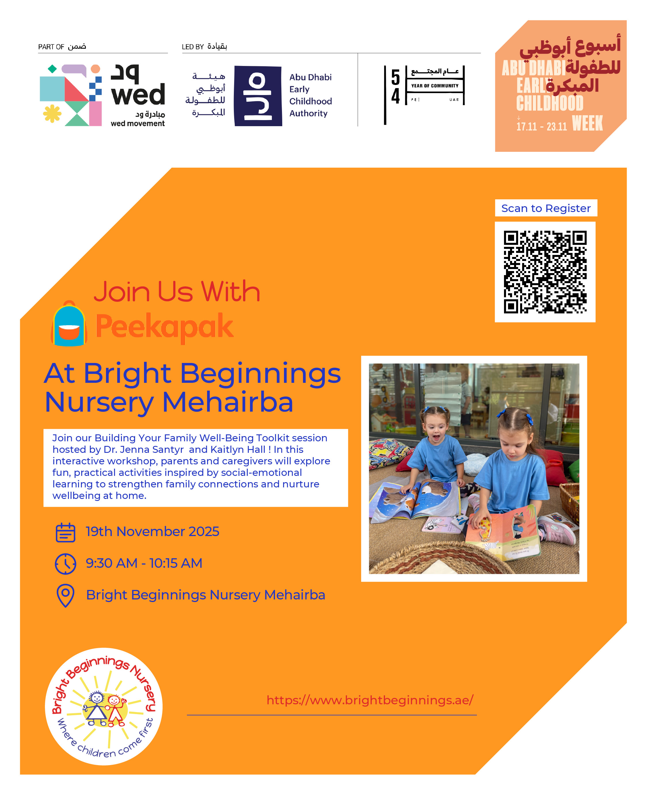 في هذه الورشة التفاعلية، سيستكشف الآباء ومقدّمو الرعاية أنشطة ممتعة وعملية مستوحاة من التعلّم الاجتماعي والعاطفي، تهدف إلى تعزيز الروابط الأسرية وتنمية الرفاه داخل المنزل.